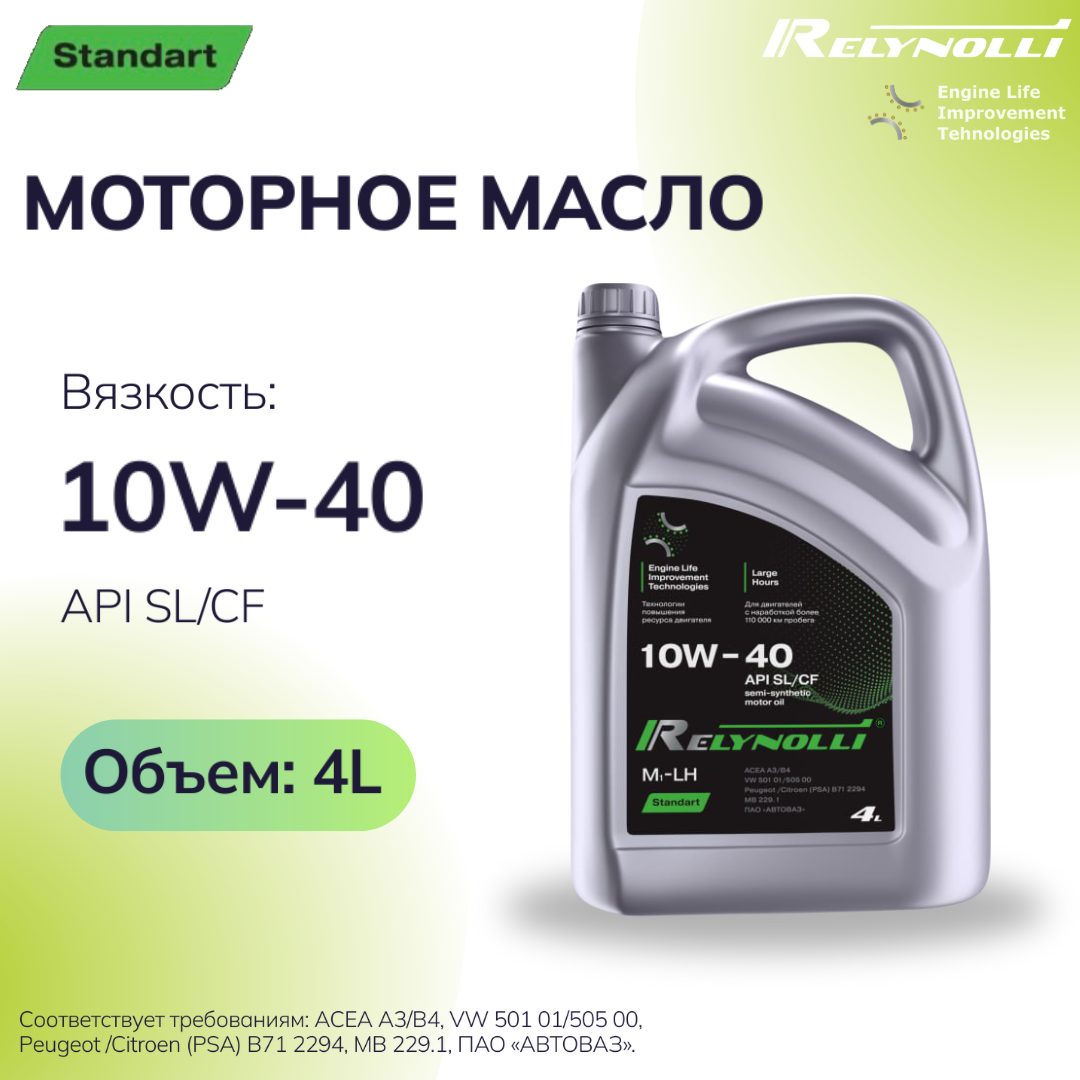 Масло моторное Relynolli Standart M1-LH 10W-40, SL/CF, 4л, канистра, ACEA A3/B4